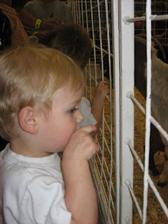 Kiefer, not so much. He was very hesitant and held on tightly. (We did get one piggy noise from him when we saw the pot-bellied pig. I think he was a little freaked by this one and all of the baby pigs nursing! They seemed overly exited!)